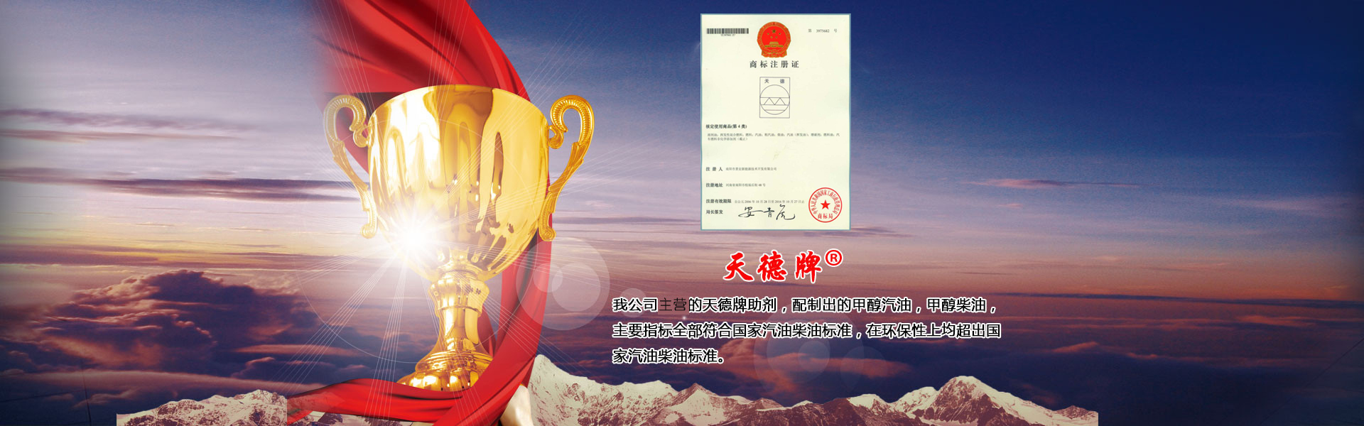 天德牌M15~M30低比例甲醇..Honor of qualification